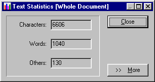 Кроме того, есть статистика по тексту, не менее подробная, чем в MS Word. Кроме количества символов, слов и прочего в тексте, есть возможность посмотреть, сколько раз употребляется то или иное слово в тексте и каков процент его использования от всех слов в тексте. У меня на главной абсолютный рекорд по частоте использования держат угловые скобки (aka знаки "больше" и "меньше") - им в сумме принадлежит почти 20% от размера файла. "Но надо же что-то с этим делать, бороться как-то...". На скрине - статистика моей главной на текущий момент.